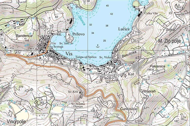 ● Vis 1:25 000, Biševo 1:25 000, Sveti Andrija 1:25 000, Komiža 1:25 000, Galijula 1:25 000, Uvala Crna ploča 1:25 000, Palagruža 1:25 000,